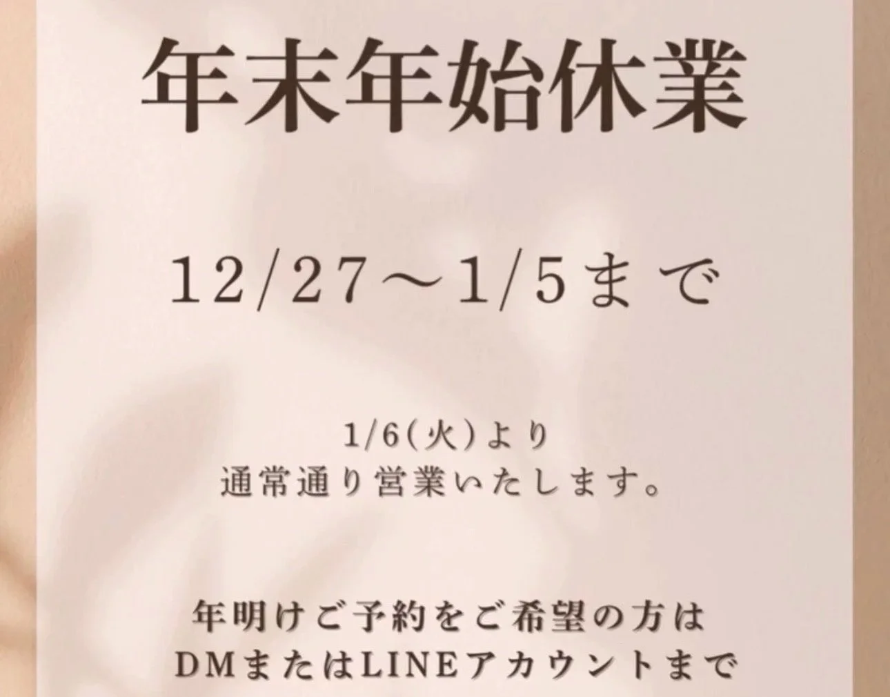 LINE又はインスタグラムのメッセージにてお知らせください。